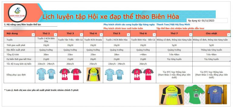 Nhằm giúp anh chị em chủ động sắp xếp thời gian để tham gia các tour tuần, tháng cho Hội xe đạp Biên Hòa tổ chức, nay BCN công bố lịch tour như hình gửi kèm phía dưới. Anh chị em chủ động thu xếp, tour nào phù hợp thì tham gia nhé