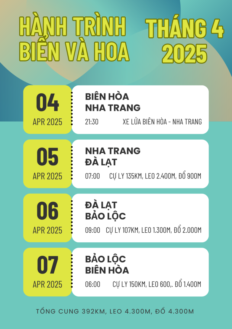 Do có 1 số anh chị em có ý kiến muốn đạp xe đi tắm biển, ăn hải sản nhưng gần 1 chút thay vì đạp xe ra Phan Thiết để có thêm thời gian vui chơi nên nay mình mở tour đạp xe đi Phước Hải vào hai ngày 2/8 – 3/8/2025 như sau…