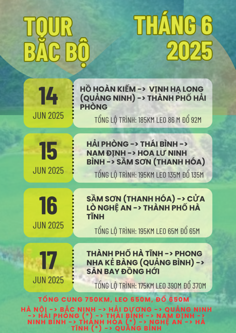 HÀNH TRÌNH BẮC TRUNG BỘ- 750KM KÝ ỨC VÀ TRẢI NGHIỆM Thời gian: 13/06 – 17/06/2025 Lộ trình: Hà Nội -> Quảng Ninh -> Hải Phòng -> Thái Bình -> Nam Định -> Ninh Bình -> Thanh Hóa -> Nghệ An -> Hà Tĩnh -> Quảng Bình NGÀY 1 (14/6): HÀ NỘI – HẠ LONG –…