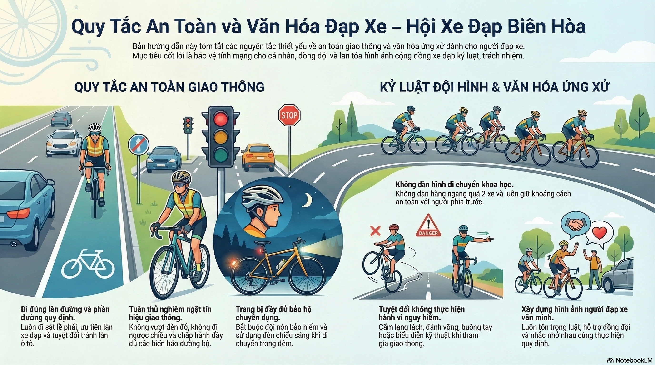 Đạp xe không chỉ là hoạt động rèn luyện sức khỏe mà còn là một phần của văn hóa giao thông văn minh. Mỗi thành viên khi tham gia luyện tập cần tuân thủ nghiêm các nguyên tắc an toàn để bảo vệ bản thân, đồng đội và những người tham gia giao thông khác….