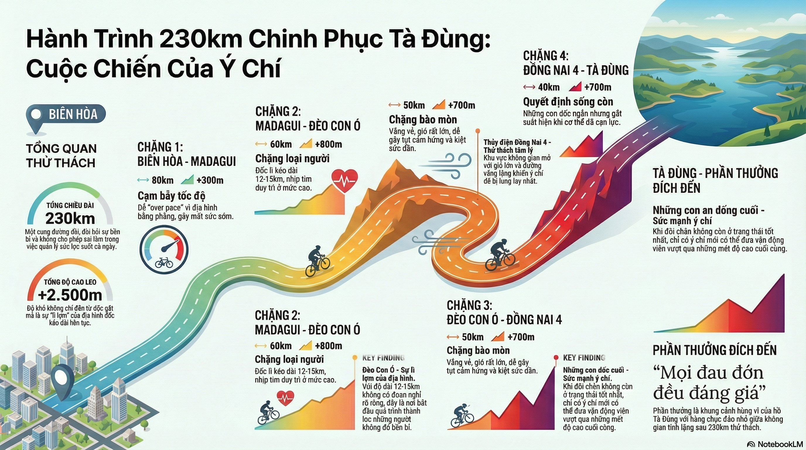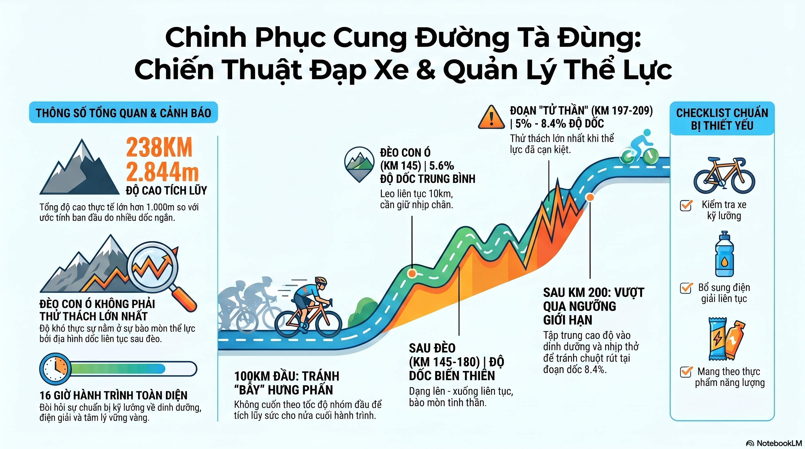 BTC trân trọng thông báo kế hoạch tổ chức hành trình “Chinh phục Tà Đùng – Cuộc chiến của ý chí”, diễn ra trong 2 ngày 16 & 17/05/2026. Đây là cung đường thử thách với tổng chiều dài ~230km và tổng độ cao leo ~2.500m, đi qua các chặng: Hành trình không chỉ là bài kiểm tra thể lực…